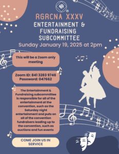 The Entertainment & Fundraising Subcommittee is responsible for raising funds for the convention throughout the convention cycle, by creating events throughout the region and holding events onsite at the convention and planning all entertainment for the convention! If you are interested in FUN!RAISING & Entertainment, join this subcommittee meeting to see how you can be of service!